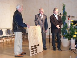 Der „Wanderpokal“, eine handgeschnitzte Holztafel mit dem Vereinslogo und mit der Angabe der Orte in denen die bisherigen
