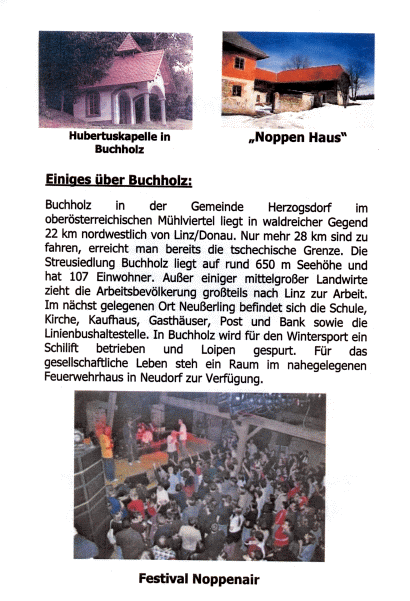 Vom 28.04. bis 01.05.2006 fand das erste europaweite Buchholz - Treffen außerhalb der Bundesrepublik Deutschland in Buchholz in der Gemeinde Herzogsdorf/ Mühlviertel in Oberösterreich statt. Freitag, 28.04.2006