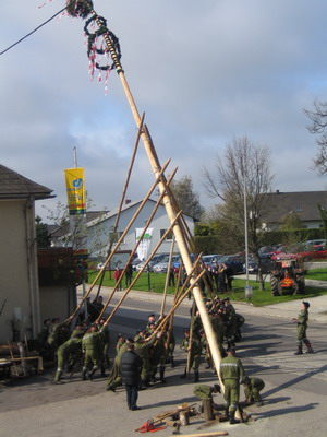 Nach dem Hochamt in der Marienkirche in Neußerling wird der Maibaum nach alten Brauch gesetzt. Musikalisch umrahmt wird die Veranstaltung durch die "Gabriel Buam", danach werden die meisten der Buchholzer Gäste verabschiedet.