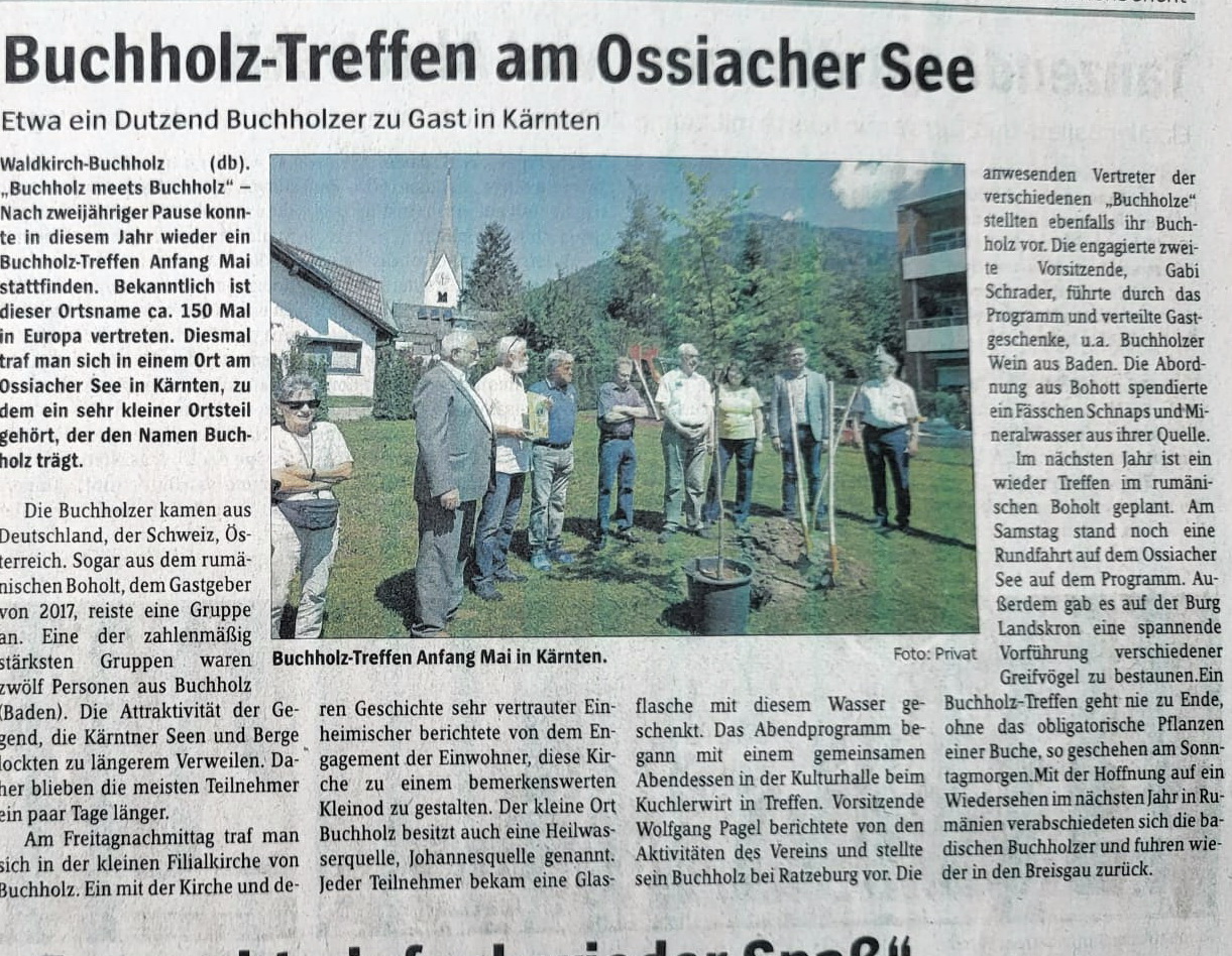 Nachdem der ursprünglich für 2020 geplante Termin Corona-bedingt ausfallen musste, nahmen nun 46 Buchholzerinnen und Buchholzer aus Österreich, Deutschland, der Schweiz und aus Rumänien bei dem ersten Buchholztreffen in Kärnten teil.