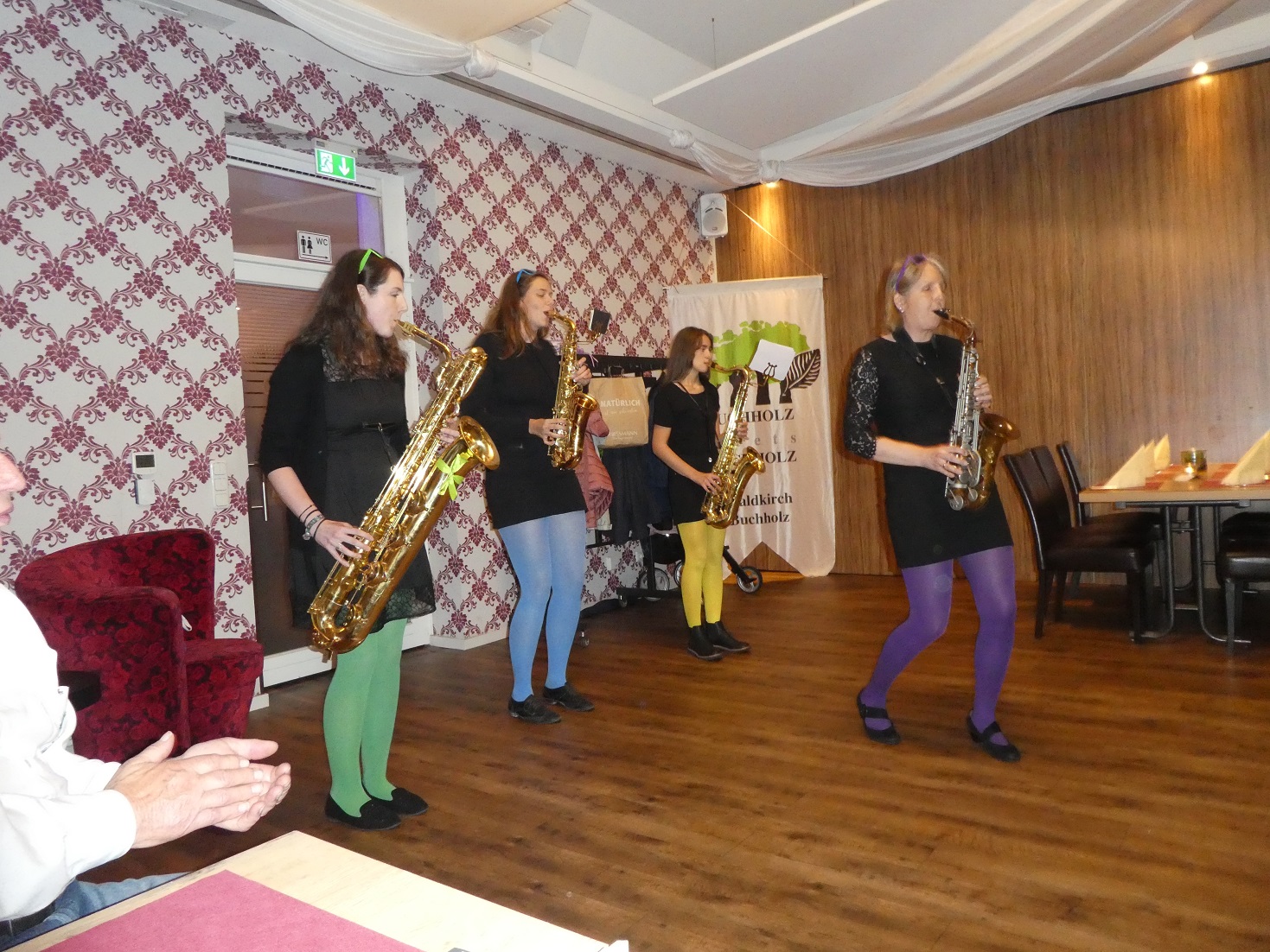 Am Abend gab es wieder ein gemeinsames Essen im Hotel Heideblüte. Und dort überraschten später vier „SoxophoNixen“ die Anwesenden. Die vier Saxophonistinnen sorgten mit ihrer Musik und Show für Stimmung und Begeisterung im Saal.