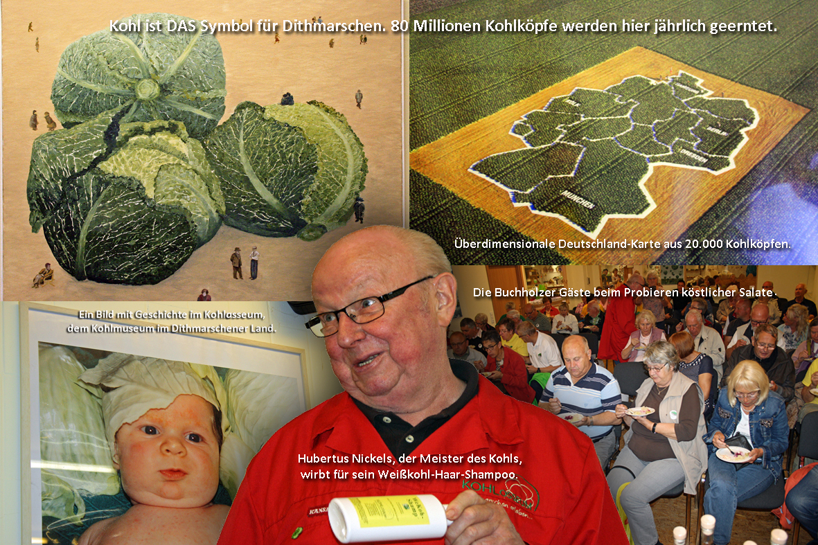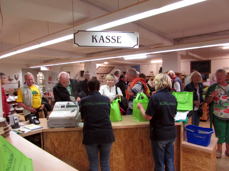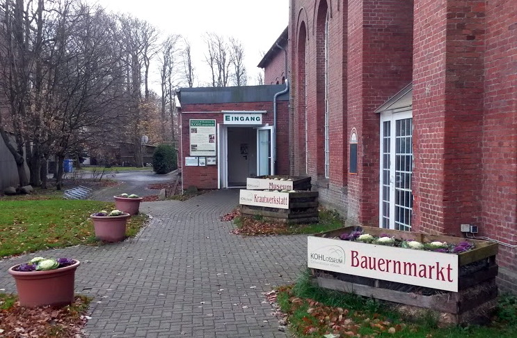 Nun geht es weiter zum KOHLoseum in Wesselburen. Zum Glück ist der Weg vom Parkplatz bis zum Eingang nicht weit. Wir werden in zwei Gruppen aufgeteilt. Die erste Gruppe wird durchs Museum geführt und die zweite Gruppe hört den Vortrag über die Krautverarbeitung von Herrn Hubertus Nickels.