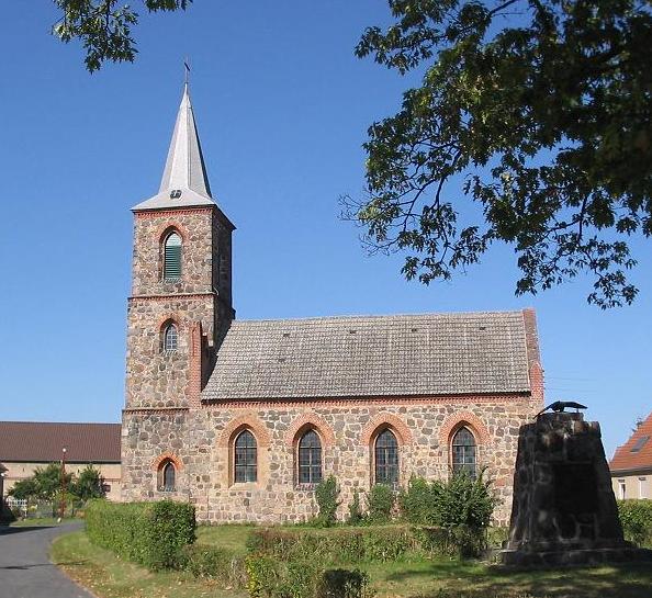 Kirche: ist ein neugotischer Feldsteinbau, Mitte des 19. Jh.