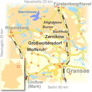 Großwoltersdorf (334 Einwohner, Stand 31.12.2013) liegt nordwestlich von Gransee im Naturpark