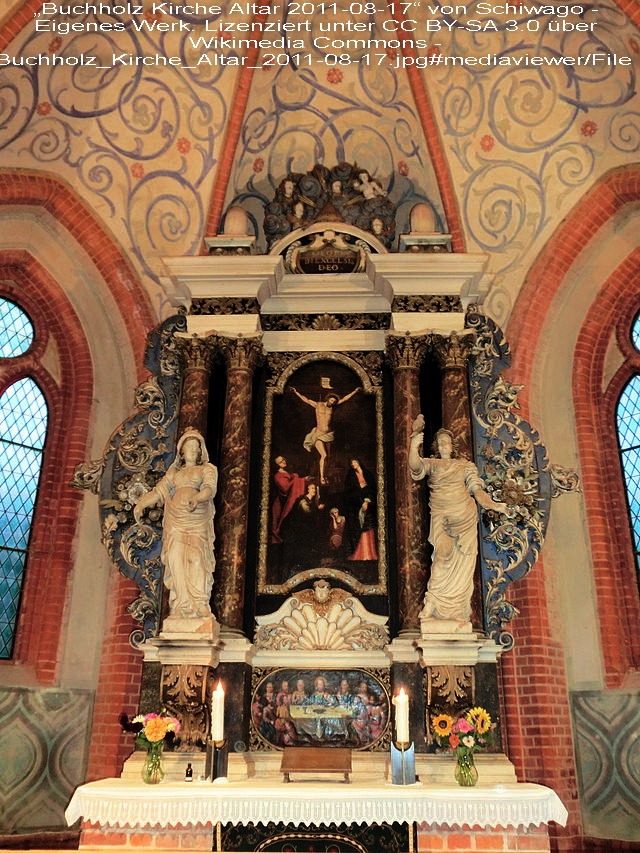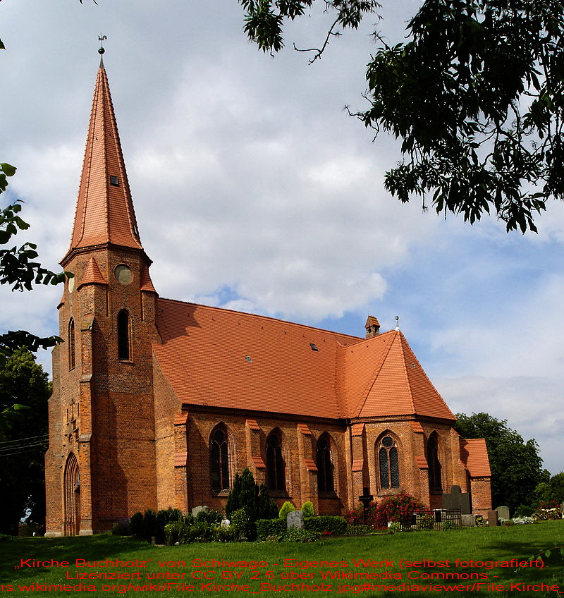 | Buchholz Buchholz wurde erstmals zur Mitte des 14. Jahrhunderts urkundlich erwähnt. Im Ort wohnen derzeit etwa 300 Menschen, hauptsächlich im neuen Wohngebiet „Küstersumpf“. Der Ort liegt südlich von Rostock direkt an der Schwaaner Landstraße. Orte in der näheren Umgebung sind Niendorf, Ziesendorf, Wahrstorf, Huckstorf und Benitz. Die Landwirtschaft spielt in Buchholz kaum noch eine Rolle; auch Industriebetriebe sind im Ort nicht vorhanden. Einzig der Reiterhof ist wirtschaftlich von Bedeutung. Der Autor und ehemalige Bürgermeister der Gemeinde Ziesendorf, Klaus Frühauf, lebte in Buchholz. Im Frühjahr 1946 wurde in Buchholz eine Gruppe von fünf Jugendlichen durch das NKWD verhaftet und durch ein sowjetisches Militärtribunal verurteilt. Ein 18-Jähriger wurde erschossen, die anderen erhielten 10 Jahre Arbeitslager. 1993 erfolgte die Rehabilitierung der ganzen Gruppe durch die russische Generalstaatsanwaltschaft. Die Dorfkirche Buchholz ist eine neugotische Backsteinkirche im Ortsteil Buchholz der Gemeinde Ziesendorf im Landkreis Rostock. Sie wurde 1876 bis 1878 errichtet und ist die Kirche der Gemeinde Buchholz in der Propstei Rostock im Kirchenkreis Mecklenburg der Evangelisch-Lutherischen Kirche in Norddeutschland (Nordkirche). Als Parochie und Kirchdorf wird Buchholz Mitte des 14. Jahrhunderts erstmals urkundlich erwähnt, 1359 wird von einem Kirchherrn Dietrich Pape berichtet. Im Mittelalter gehörte die Kirche zum Archidiakonat Rostock. Sie wird erstmals im Zehntregister 1470 erwähnt. 1876 bis 1878 wurde die Kirche im neugotischen Stil erbaut, brannte zusammen mit dem Pfarrhaus aber am 1. Mai 1914 nieder. Unter großen wirtschaftlichen Anstrengungen wurde sie 1923 bis 1925 wieder aufgebaut, der Turm dabei um eine Etage niedriger als beim Vorgängerbau angelegt. Unterstützung durch das Land konnte nicht erfolgen, so dass die Bauern und Bürger die Mittel dazu zusammentrugen. Die Akten über die Vorgängerkirche sind beim Brand vernichtet worden, so gibt es keine Nachweise über den Bau. Nach dem Wiederaufbau wurden durch den Oberkirchenrat in Schwerin ein Altar von 1728 und eine Kanzel von 1740 aus der Stadtkirche Tessin übergeben. Ein von der Berliner Künstlerin Elisabeth Strempel gemaltes Altarbild mit der Darstellung des Gekreuzigten von 1883 war bei dem Brand gerettet worden und befindet sich in einer seitlichen Nische. Die Orgel wurde 1930 vom Orgelbauer Marcus Runge aus Hagenow erbaut. Durch nicht durchgeführte Instandhaltungsmaßnahmen während der Zeit des Nationalsozialismus und der Zeit der DDR waren massive Schädigungen am Baukörper aufgetreten, an deren Behebung seit den 1990er Jahren gearbeitet wird. In den Jahren 1998 und 2000 wurde das Dach erneuert, 2004 wurden die Glocken repariert und eine Außenbeleuchtung installiert. Ein Förderverein unterstützt seit 2003 die Kirchgemeinde bei der Sanierung und Werterhaltung der Kirche. |