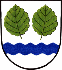 In Silber zwei auswärts gewendete grüne Buchenblätter über einem blauen Wellenbalken.