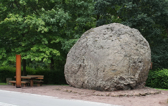 Basaltbrocken, die aus dem Strohner Lavastrom und vom Wartgesberg stammen. Unterhalb