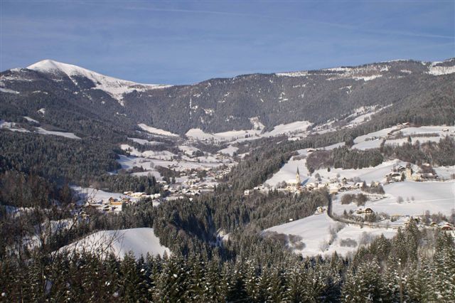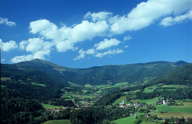 ruhigen Wäldern ist die Gemeinde, welche die Luftgüte eines Kurortes aufweist, in einem sonnigen Becken in 911 m Seehöhe