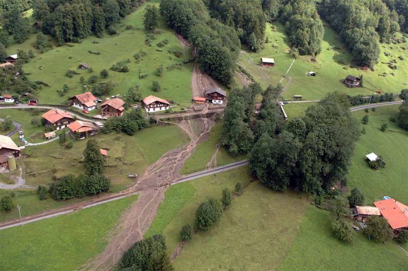 Das Hochwasser der Schwarzen Lütschine vom August 2005 verwüstete grosse Teile des Dorfes schwer.