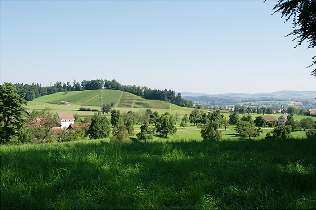 zwischen Pfannenstiel und Bachtel. Höchster Punkt der im Schnitt auf etwa 500 m ü. M. liegenden Gemeinde ist der Schlüssberg