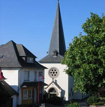 Lehrpfad wieder bekannt. Im früheren Garten des renovierten Pfarrhauses wurde ein Gedenkstein für die im zweiten Weltkrieg gefallenen amerikanischen Soldaten errichtet. Im Jahre 1870 wurde die heutige Kirche der Heiligen Kreuz -Pfarrei Goesdorf erbaut.
